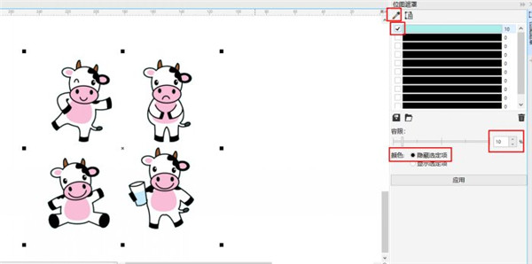 位圖遮罩是指選定圖片中的某一范圍內(nèi)的顏色,將其特定顯示或是隱藏。具體操作如下: