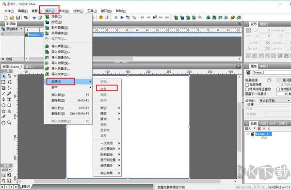 這個類別中主要包括放置(place)、 刪除(remove)、 移動(move)三種特效 ,放置特效就是把對象放在影片的播放時間線上。 刪除就是把對象從時間線上刪
