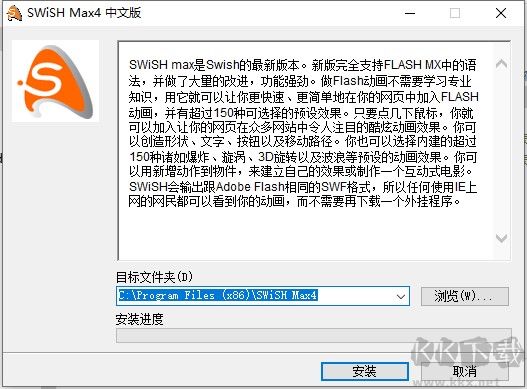 swishmax4(二維動畫制作軟件)是一款二維動畫制作軟件,這款軟件有著非常先進的技術,用戶能夠快速上手,使用起來超級方便,軟件內(nèi)擁有許多非常實用的工具,如創(chuàng)建直線、貝塞爾曲線、動作路徑、正方形、橢圓形、精靈、rollover按鈕、導入表單的所有工具,非常值得大家下載使用~