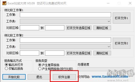 1、雙擊“Excel比較大師.exe”程序打開(kāi)軟件,可以看到剩余30天試用期,點(diǎn)擊軟件注冊(cè)。