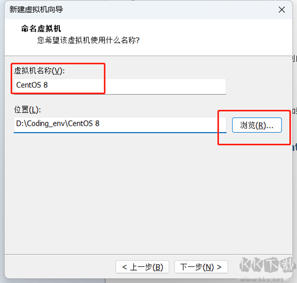 4、設(shè)置虛擬機名稱和安裝位置