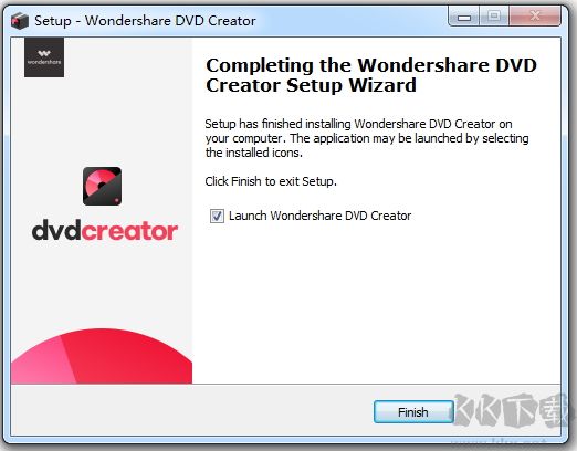安裝完成后,您將收到一個(gè)窗口,如屏幕截圖所示。只需單擊“完成”即可退出安裝程序并立即啟動(dòng) Wondershare DVD Creator。