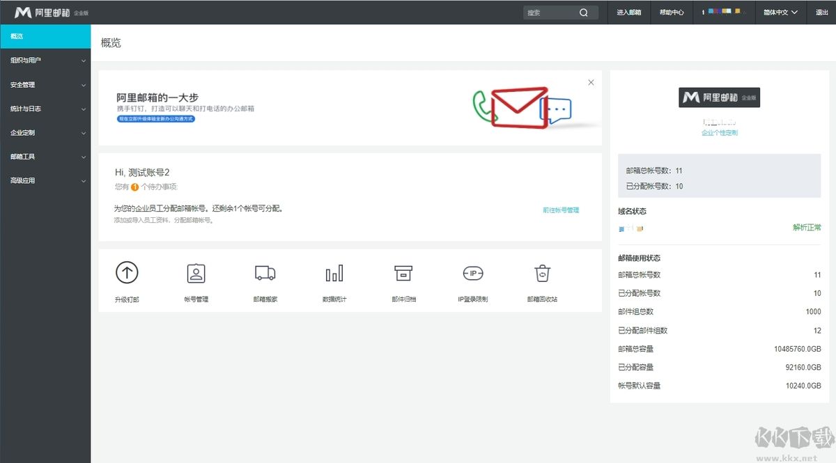 管理員賬號(hào)登錄阿里企業(yè)郵箱默認(rèn)進(jìn)入域管理頁(yè)面。