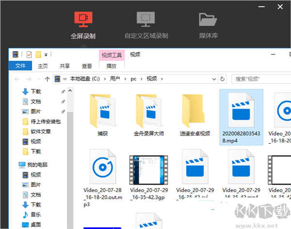 7、完成視頻錄制后彈出本地文件管理彈框,該彈框可以對所有的屏幕錄制視頻進(jìn)行管理,點(diǎn)擊即可進(jìn)行播放。