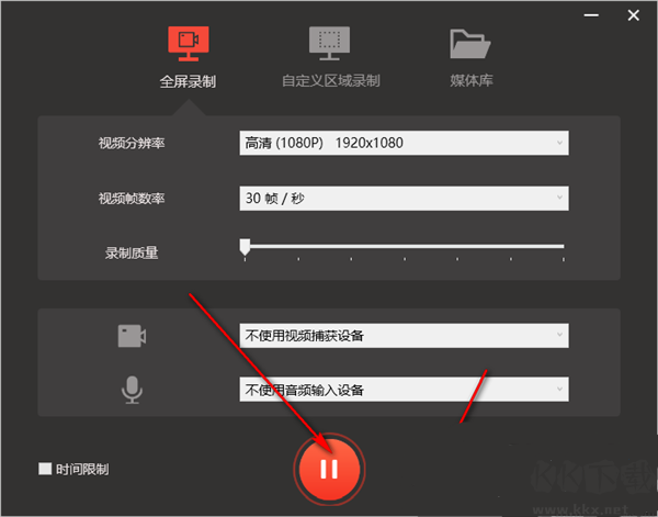 6、點(diǎn)擊全屏錄制按鈕即可進(jìn)行全屏錄制操作,點(diǎn)擊暫停即可完成屏幕錄制。