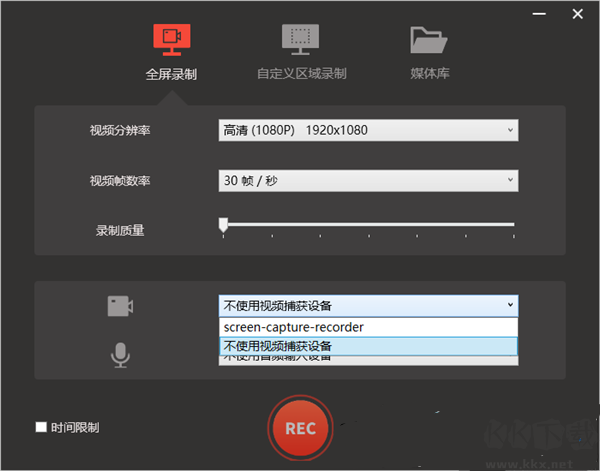 4、點(diǎn)擊錄制質(zhì)量可以進(jìn)行錄制質(zhì)量進(jìn)行設(shè)置,點(diǎn)擊鼠標(biāo)然后點(diǎn)擊錄制資料即可完成錄屏設(shè)置。