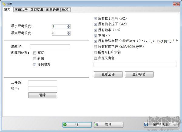 您可以指定最小密碼長(zhǎng)度,最大密碼長(zhǎng)度,掩碼字以及密碼組成的可能字符類型。