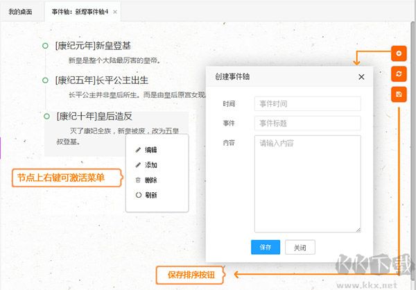 事件軸文檔提供時間線性的思維管理文檔,適合創(chuàng)建紀年、事件發(fā)展性的文檔。