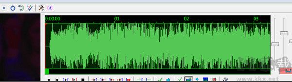 6、您可以看到Aegisub中文版音頻已經(jīng)可以正常播放,播放區(qū)右邊的出現(xiàn)音頻的波形圖,波形圖右面三個分別為對波形進行水平縮放,垂直縮放,調(diào)節(jié)音量。