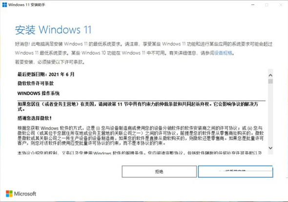 2、確認兼容性沒有問題后就可以正式的安裝Windows 11 啦,點擊“接受并安裝”按鈕。