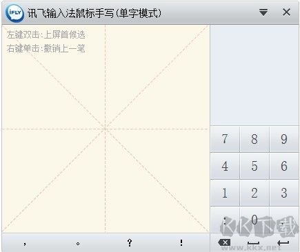 2、如您的電腦沒有觸摸板,則只能進入鼠標手寫模式,界面示意如下: