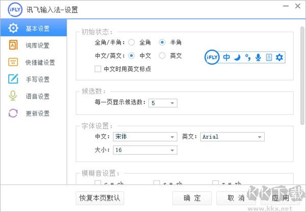 1、右擊輸入法狀態(tài)欄,彈出的菜單中點擊【設(shè)置】進入訊飛輸入法設(shè)置界面。