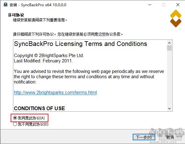 2、首先點(diǎn)擊“SyncBackPro64_Setup.exe”安裝原版程序,閱讀并同意軟件安裝協(xié)議;