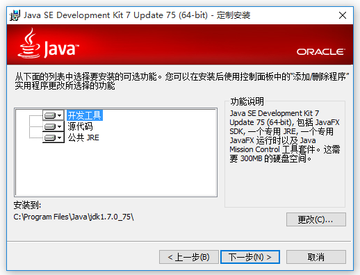 提示:Java SE Development Kit 7 Update 75 (64-bit),包括JavaFX SDK,一個(gè)專(zhuān)用JRE,一個(gè)專(zhuān)用JavaFX運(yùn)行時(shí)以及Java Mission Control工具套件。這需要300MB的硬盤(pán)空間。