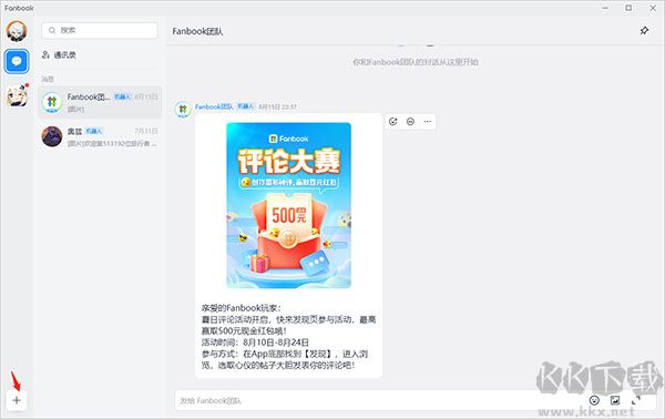 1、進入Fanbook pc版,點擊下方加號