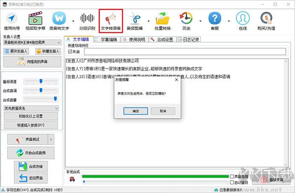 功能特點:支持聲音克隆、操作簡單、可指定每句話的語速、自動切換發(fā)音角色、設(shè)置停頓等