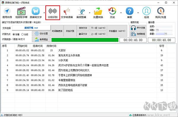 您的錄音將分段識別,可查看每分鐘的識別情況,以及收聽每段錄音、支持表格導(dǎo)出、打印、搜索等功能