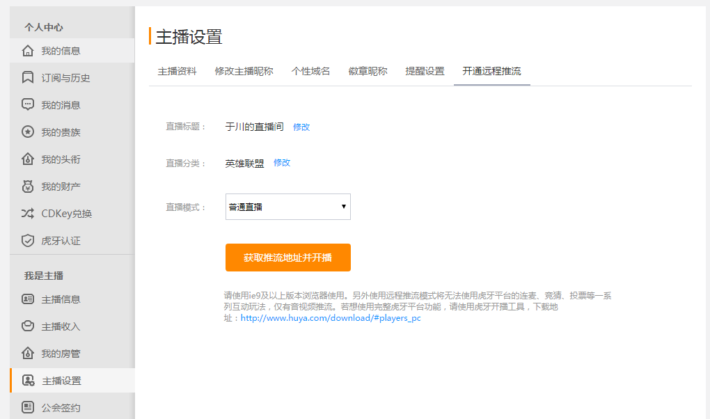 1、打開虎牙官網(wǎng)—個人中心—主播設(shè)置—開通遠(yuǎn)程推流。
