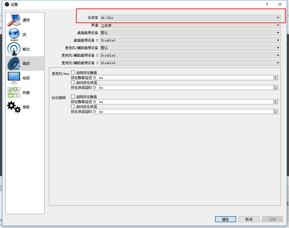 4、音頻設(shè)置采樣率為44.1khz