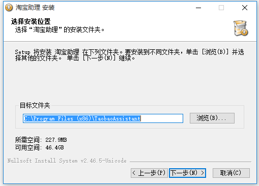 選擇“淘寶助理”的安裝文件夾。Setup將安裝淘寶助理在下列這件來(lái)。要安裝到不同文件夾,單擊C瀏覽(B)] 并選擇其他的受奔夾。單擊下一步(N)]維續(xù)。