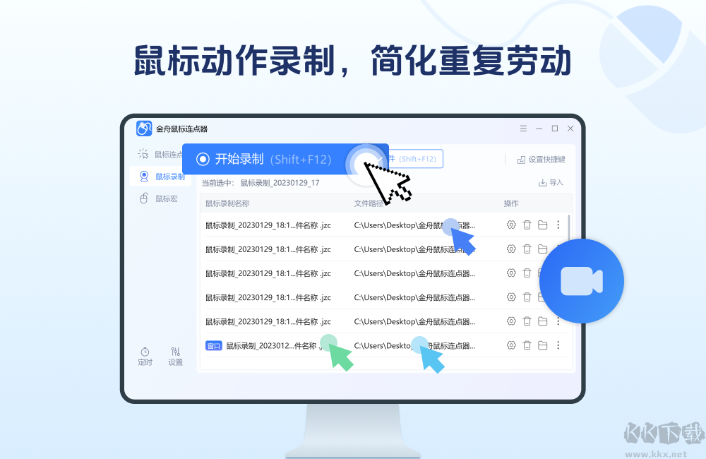 鼠標(biāo)動(dòng)作錄制:錄制并回放鼠標(biāo)動(dòng)作,簡化重復(fù)性勞動(dòng),節(jié)省寶貴時(shí)間。