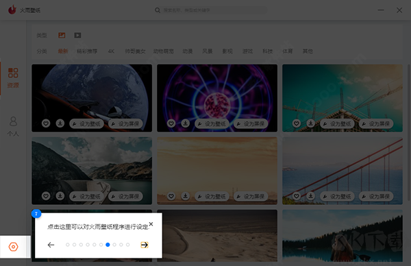 火雨壁紙電腦版是一款超級(jí)好用實(shí)用的電腦桌面美化軟件,這款軟件有著超級(jí)強(qiáng)大的功能,為用戶們提供了海量靜態(tài)和動(dòng)態(tài)的桌面以及屏保壁紙,壁紙種類齊全,匯聚了4K、影視、體育、游戲、科技、帥哥美女、動(dòng)物萌寵等多種不同類型高清壁紙,全程還都是免費(fèi)使用的,喜歡這款軟件的小伙伴千萬(wàn)不要錯(cuò)過(guò)~