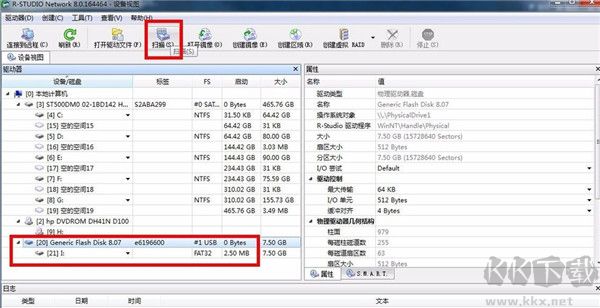 3、接著鼠標(biāo)點(diǎn)擊U盤的選項,然后在軟件上面的工具欄中選擇掃描選項,如圖所示: