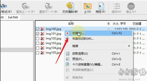9、接著在要恢復(fù)的圖片選項前面的方框內(nèi)打勾,然后選擇上方的恢復(fù)標(biāo)記的選項,如圖所示: