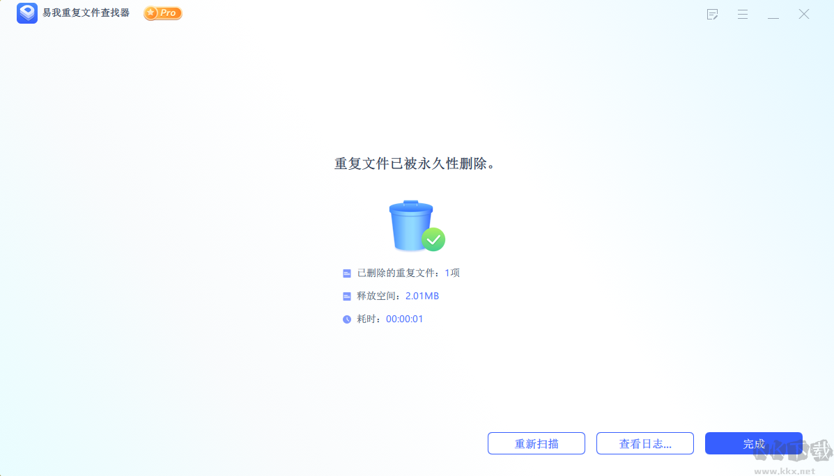 重復(fù)文件便根據(jù)自己的選擇完成刪除或移動(dòng)(下圖以選擇永久性刪除為例)。