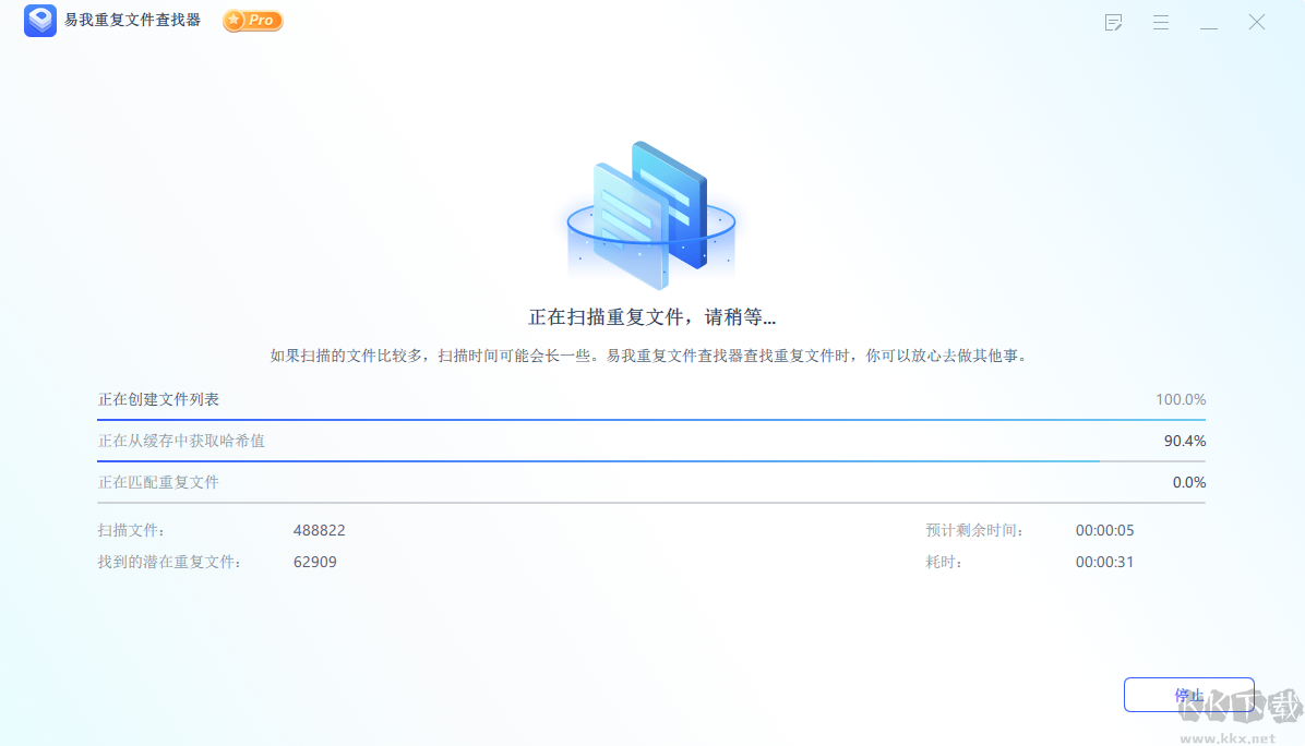 開(kāi)始進(jìn)行重復(fù)文件掃描,可以在掃描完成前進(jìn)行「停止」操作。
