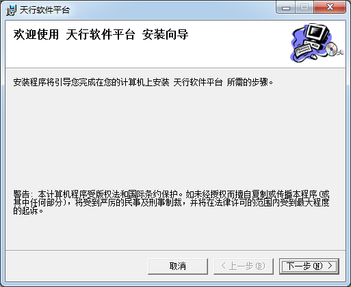 1.安裝程序?qū)⒁龑?dǎo)您完成在您的計算機上安裝天行軟件平臺所需的步驟。