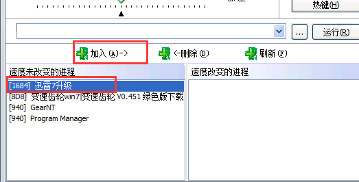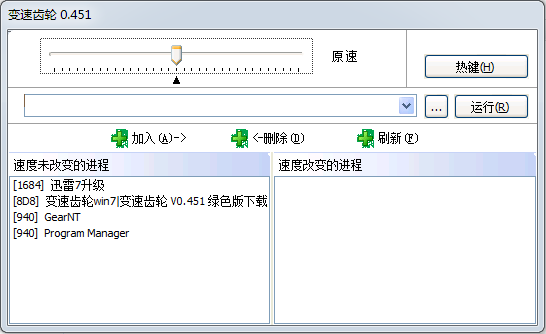 1、在“速度未改變的進程”列表框中是變速齒輪沒有對他變速的進程。在這個列表框中選擇一個進程,點加入按鈕,可以把他加入到“速度改變的進程”列表中。