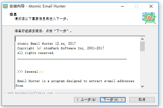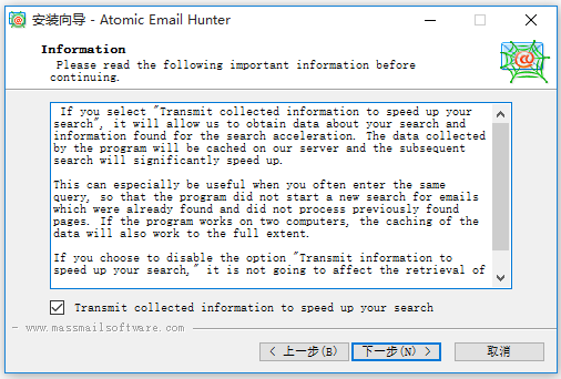 Atomic Email Hunter是一款可以在網(wǎng)頁(yè)中尋找電子郵件地址或用戶名的獵取軟件,搜索速度很快,可以設(shè)定掃描的深度和路徑,支持多頁(yè)操作,適合營(yíng)銷工作者使用。軟件可以搜索匹配指定的關(guān)鍵字的網(wǎng)站,并從這些網(wǎng)站中提取電子郵件地址,從需要登錄和密碼的頁(yè)面中檢索地址,簡(jiǎn)單方便。Atomic Email Hunter安裝說(shuō)明
