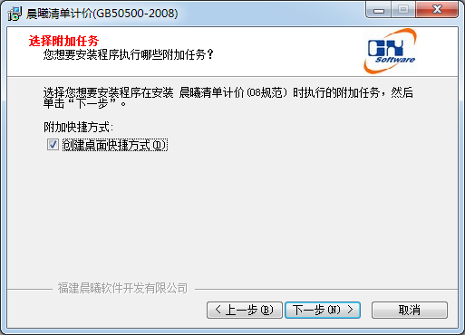 建您想要安裝程序在安裝晨曦清單計價08規(guī)范)時執(zhí)行的時加任務,然后單擊下一步。