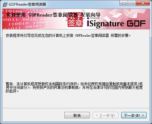 安裝程序?qū)⒁龑瓿稍谀挠嬎銠C上安裝GDFReader簽章閱讀器所需的步驟。