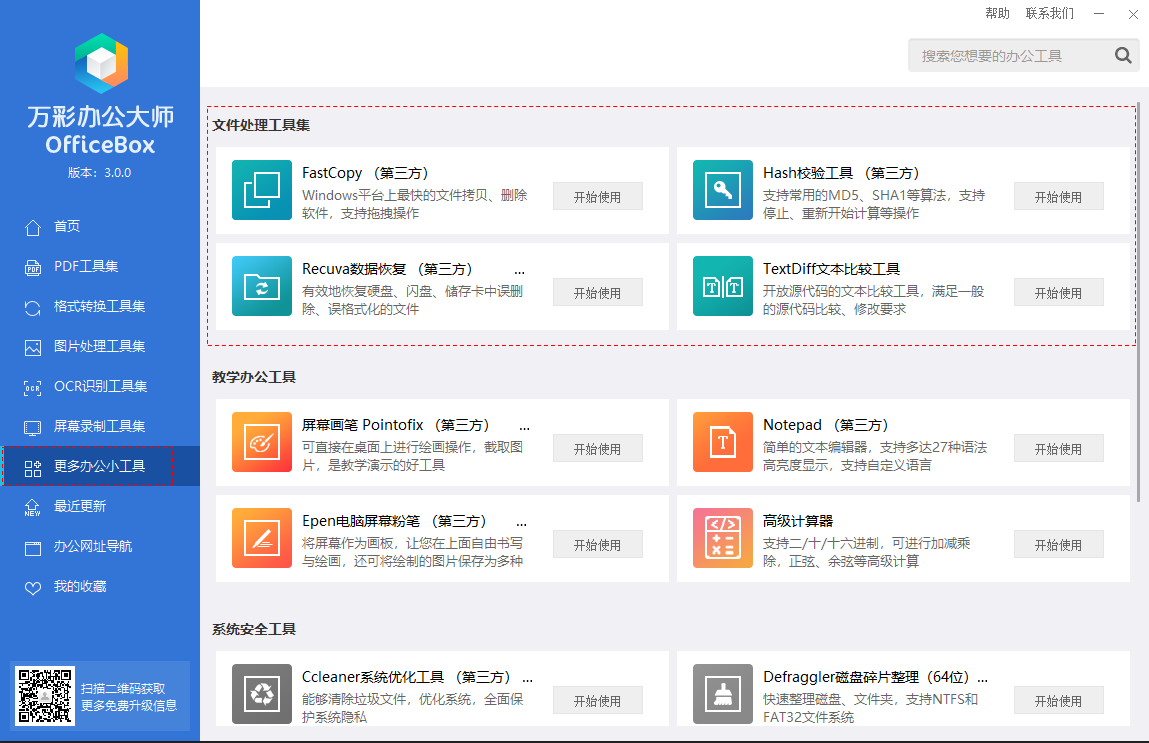 這部分套件是由萬彩收錄的一批由第三方廠商研發(fā)的綠色免安裝組件,包括PDF閱讀器;文件恢復(fù)工具; 系統(tǒng)優(yōu)化工具等等。