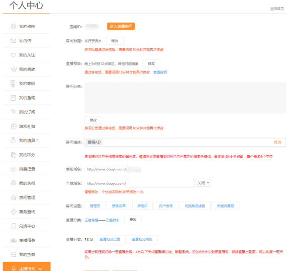 直播間審核之后進入個人中心-主播相關(guān)-直播設置界面,會看到這樣的房間設置界面: