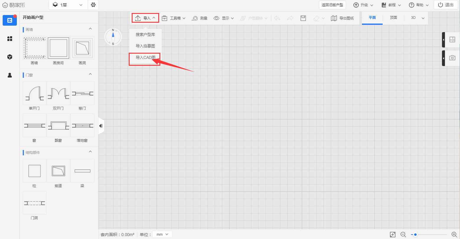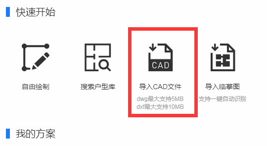 也可在選擇自己畫戶型時,選擇點(diǎn)擊【導(dǎo)入】→【導(dǎo)入CAD圖】