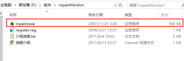 2、解壓完成后得到文件夾,我們雙擊文件夾打開(kāi)進(jìn)入下圖中的界面,即可看到有Inpaint.exe和register.reg兩個(gè)文件,在運(yùn)行exe文件之前我們需要先運(yùn)行register.reg,才能保存圖片。