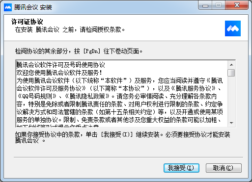1.到本站下載安裝騰訊會議,打開安裝程序,點擊我接受繼續(xù)安裝