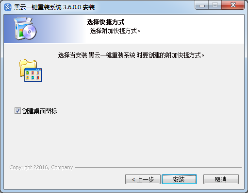3.建議創(chuàng)建快捷方式,選擇當(dāng)安裝黑云一鍵重裝系統(tǒng)時(shí)要?jiǎng)?chuàng)建的附加快捷方式。