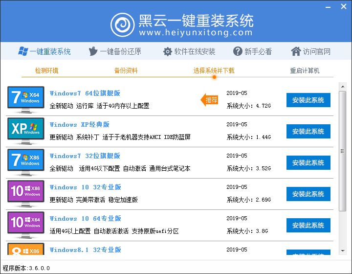 黑云一鍵重裝系統(tǒng)使用方法