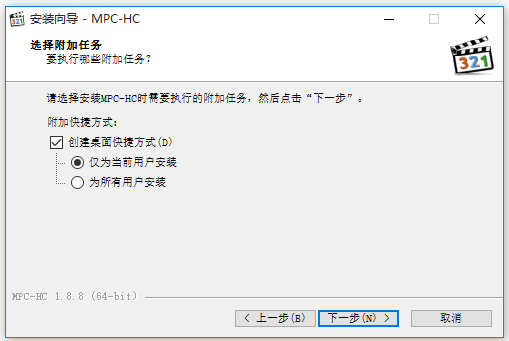 請(qǐng)選擇安裝MPC -HC時(shí)需要執(zhí)行的附加任務(wù),然后點(diǎn)擊“下一步”