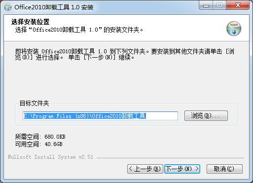 選擇“0ffi ce2010卸載工具1.0” 的安裝文件夾。
