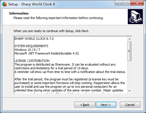This wil install Sharp World Clock 8.7.0 on your computer.