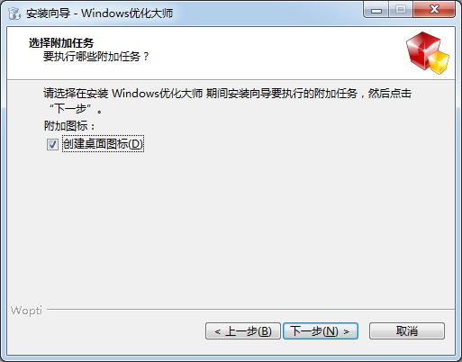 請選擇在安裝Windows優(yōu)化大師期間安裝向?qū)б獔?zhí)行的附加任務(wù),然后點擊
