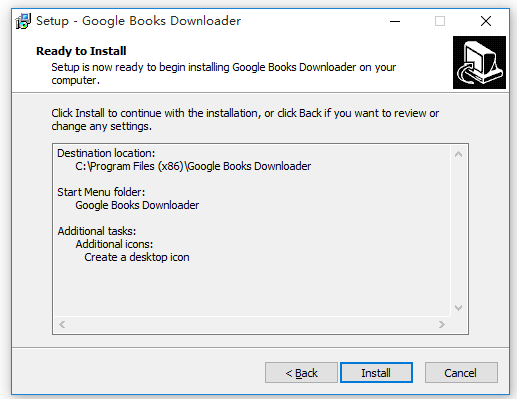 Setup has finished installing Google Books Downloader on your
