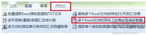 2、請(qǐng)點(diǎn)擊【多個(gè) Excel 文件的同名工作表分別合并數(shù)據(jù)】,具體位置參照下圖: