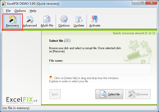 2、點(diǎn)擊selectfile按鈕,找到您要恢復(fù)的Excel文件,找到后點(diǎn)擊Recover按鈕。