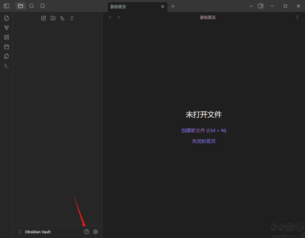 1、開啟已完成安裝的 Obsidian 軟件,點(diǎn)擊設(shè)置旁的問號(hào)